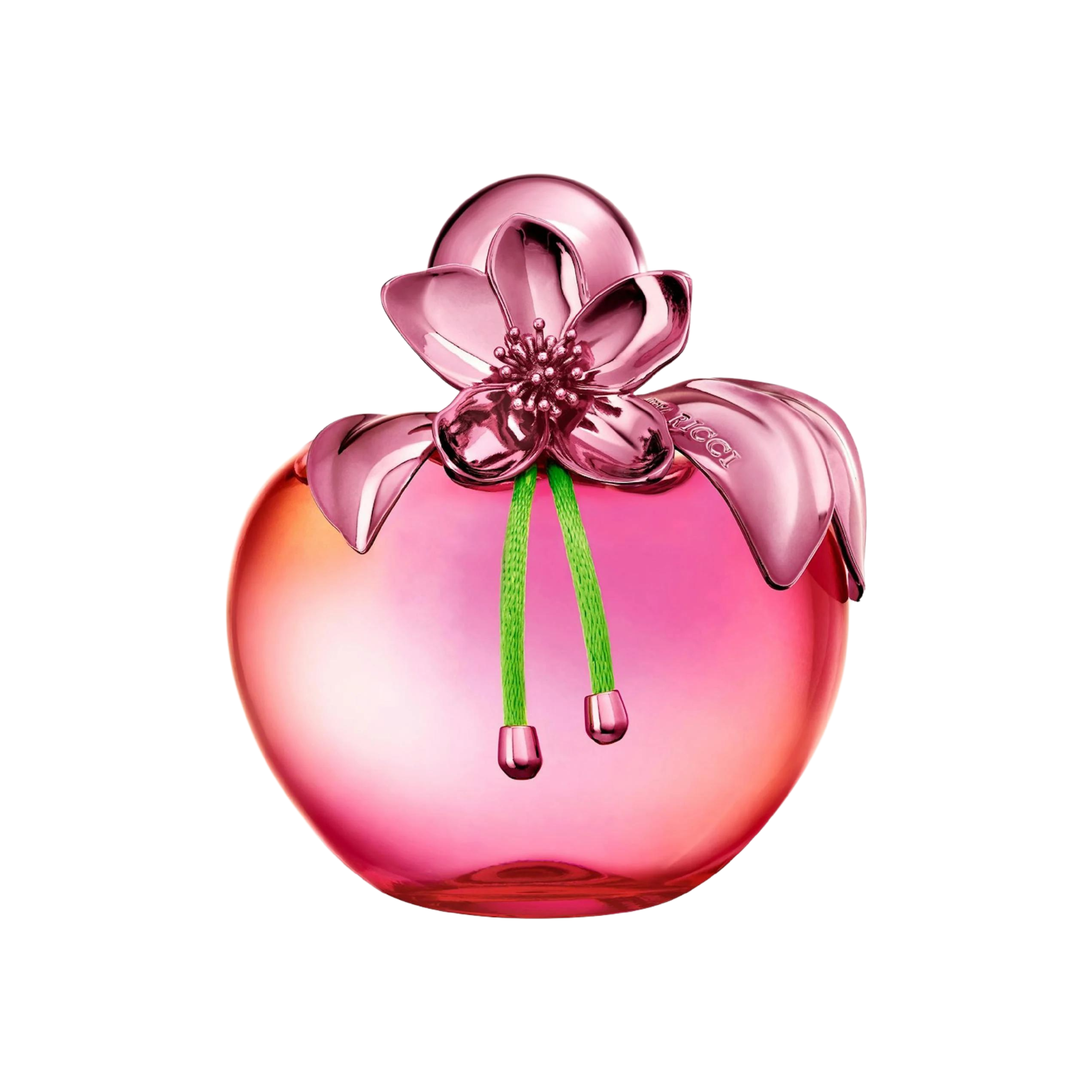 The iconic apple-shaped bottle of Nina is reimagined with an iridescent pink finish achieved through a complex lacquering process. A contemporary signature that magnifies the fragrance’s femininity.