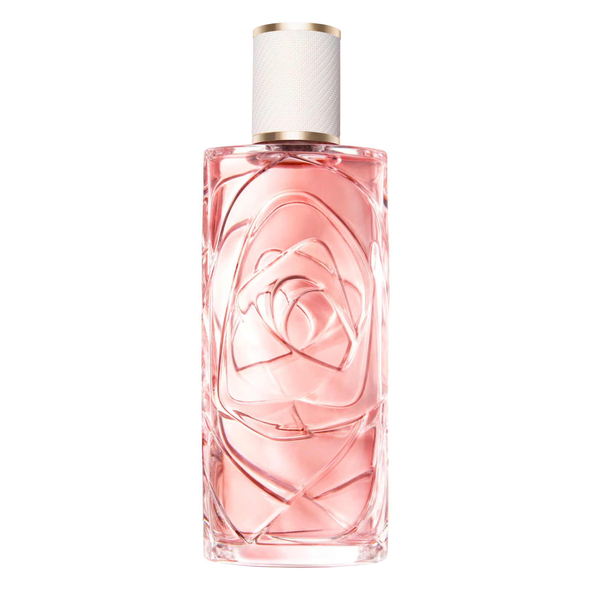 Arborant l’emblématique motif de la Lancôme Rose Agora gravé dans le verre, le flacon a été soigneusement poli au feu pour en révéler toute la clarté et la brillance, tout en préservant la finesse de ses détails.